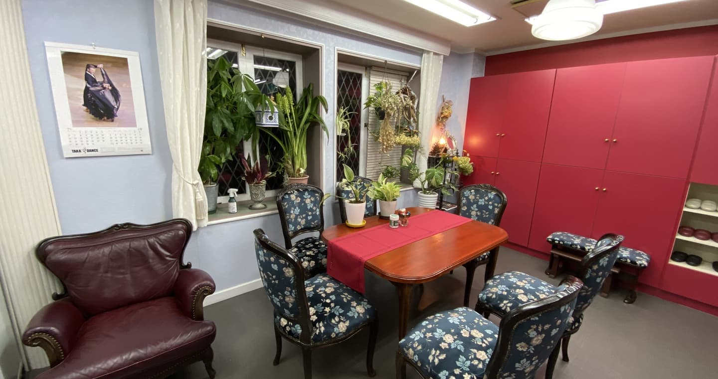 Studio Info ダンススタジオのご案内 ダンス経験のある方が、グループについてゆくための補助レッスン スタートアップコース 初めて社交ダンスをお習いになる方へ 入門コース スタジオ スタジオ内の風景です。 談話室 ダンスの休憩時間にご利用いただけます。